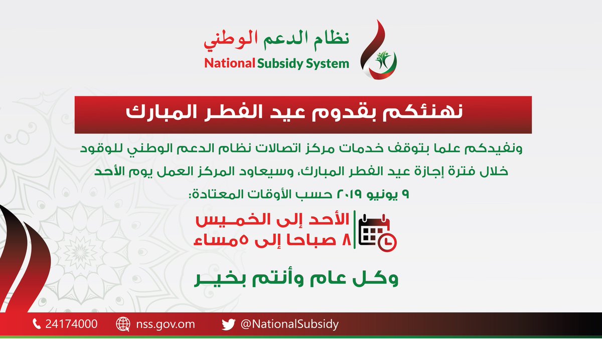 نظام الدعم الوطني On Twitter نهنئكم بقدوم عيد الفطـر المبارك ونفيدكم علما بتوقف خدمات مركز اتصالات نظام الدعم الوطني للوقود خلال فترة إجازة عيد الفطر المبارك وسيعاود المركز العمل يوم الأحد 9