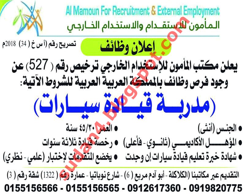مطلوب للعمل مدربة قيادة سيارات بالسعودية