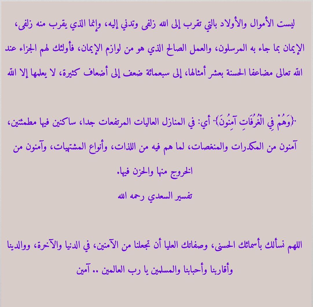 شداد آل معافي On Twitter الأربعاء ٦ رمضان الإيمان والعمل الصالح وم ا أ م و ل ك م و ل ا أ و ل ـ د ك م ب ٱل ت ی ت ق ر ب ك م ع ند ن ا ز ل ف ى إ ل ا م ن ء ام ن و ع م ل ص ـ ل ح ا ف أ و ل ـ ى ك ل ه م ج ز ا ء ٱلض ع ف