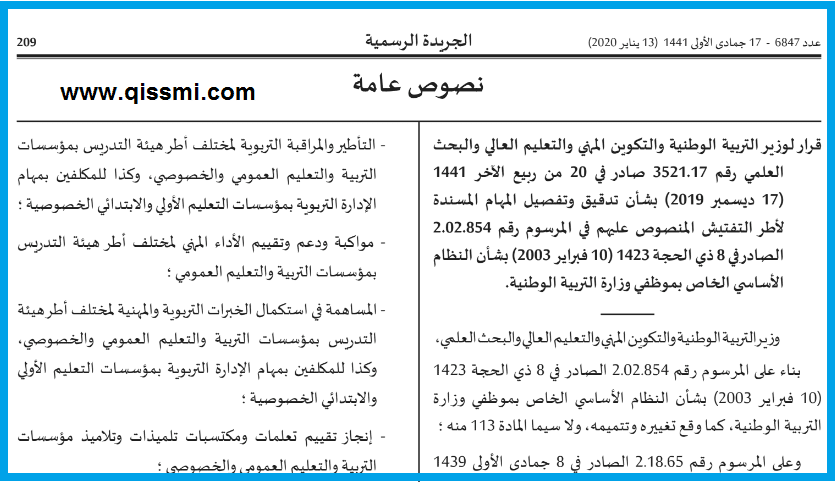 القرار الوزاري المفصل لمهام أطر التفتيش التربوي
