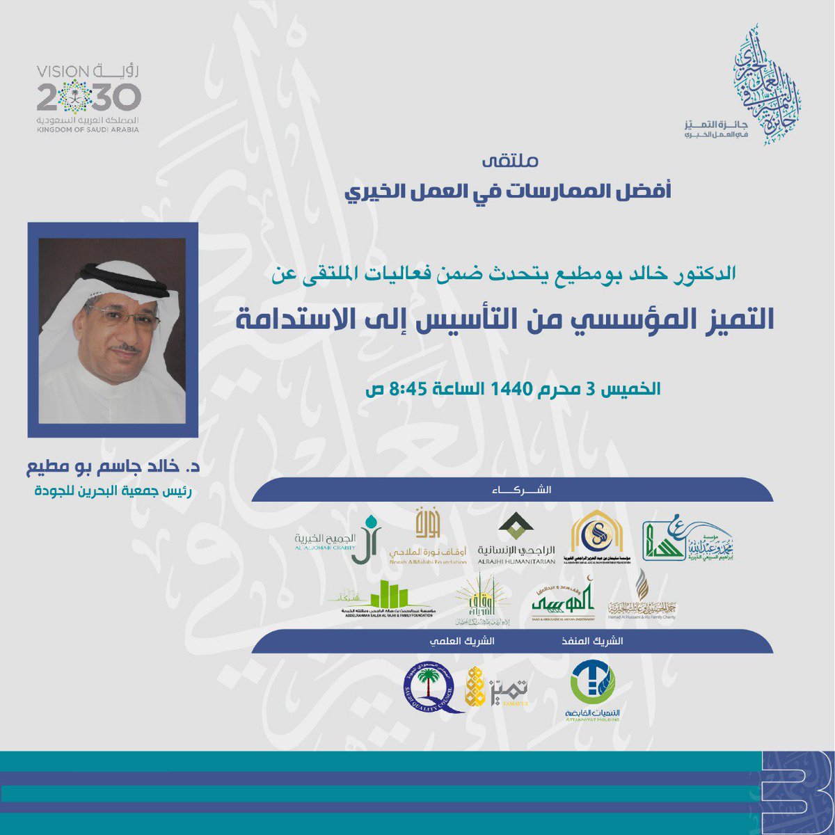 جائزة التميز في العمل الخيري V Twitter التميز المؤسسي من التأسيس إلى الاستدامة محاضرة ثرية يقدمها الدكتور خالد بومطيع في اليوم الثاني من ملتقى أفضل الممارسات في العمل الخيري Https T Co Sxlzc5fj2a