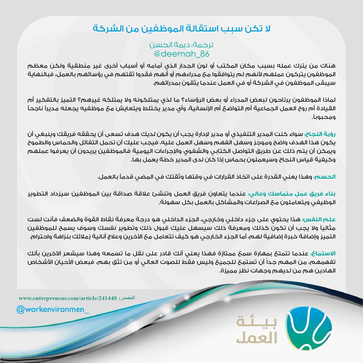 بيئة العمل On Twitter لا تكن سببا في استقالة الموظفين من الشركة بيئة العمل Https T Co Pktq1xzqtn