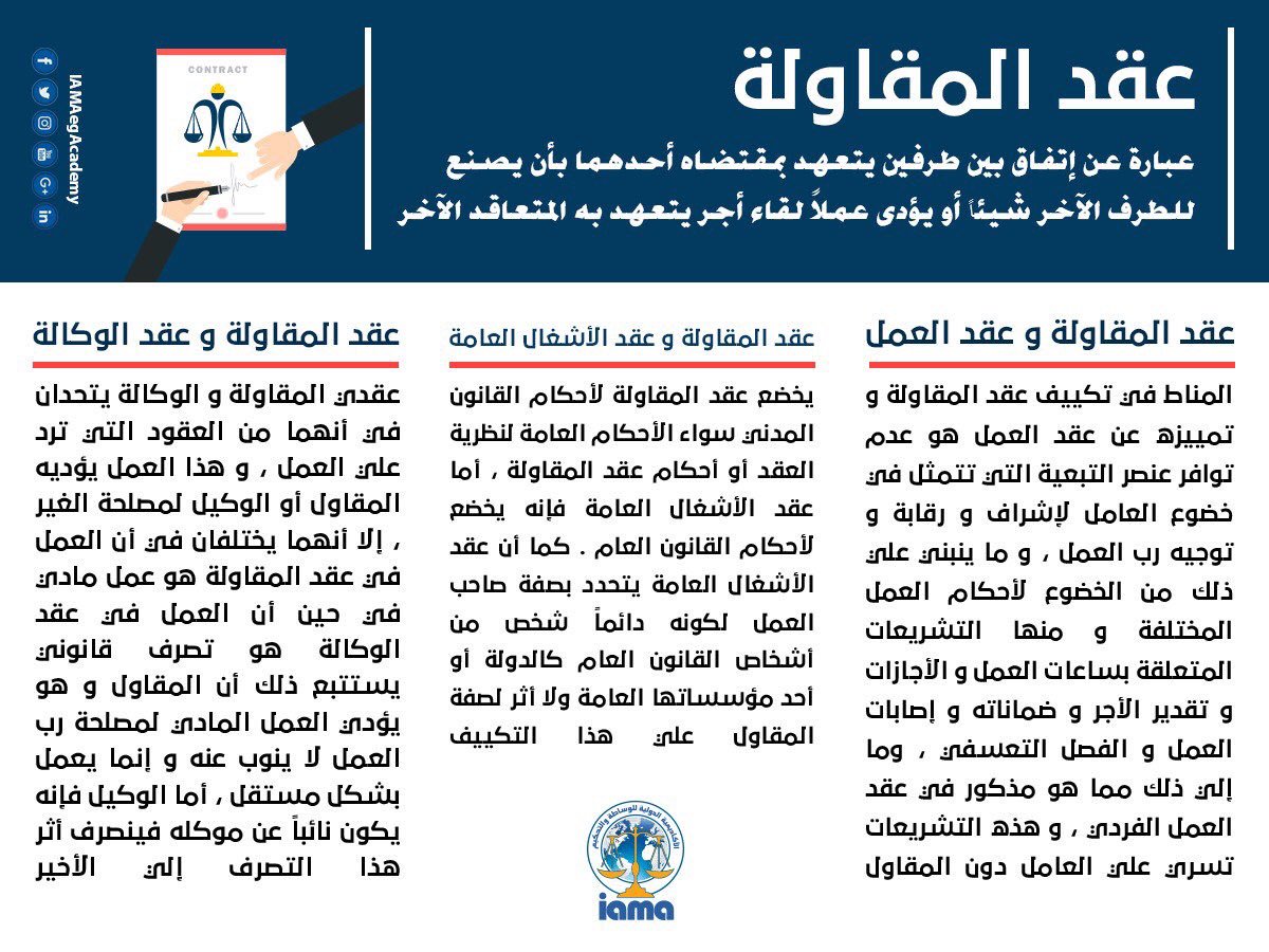 تميز عقد المقاولة عن عقد العمل وعقد الايجار حــــــــصريــ الكاتب Ikrama32 تميز عقد المقاولة عن كل من عقد العمل والايجار ظل عقد المقاولة مختلطا بالايجار والعمل في فرنسا كما كان في القانون الروماني وفي ظل التغيرات والتطورات لم تعد هده النظرية تتماشا مع الواقع فكان