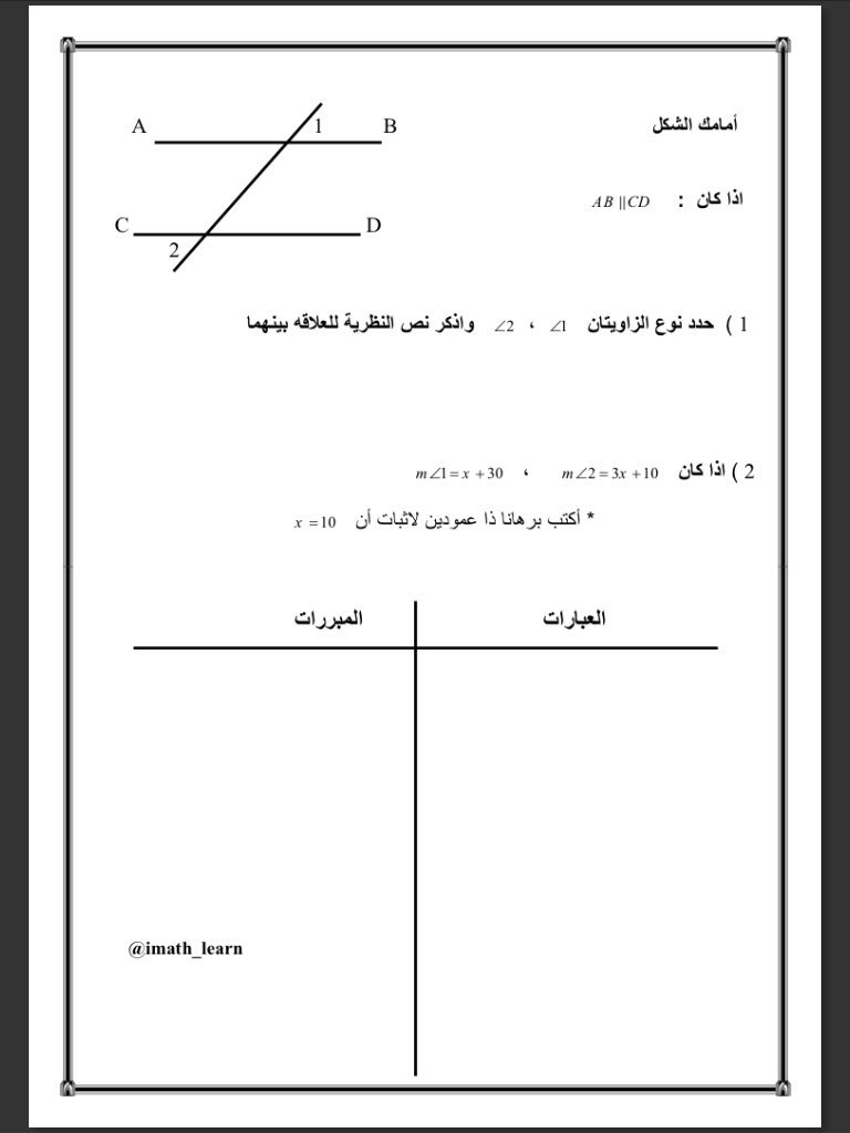 تعلم الرياضيات Op Twitter الأول الثانوي الفصل الثاني التوازي والتعامد ورقة عمل مراجعة لأهم مواضيع الفصل الجزء الأول Https T Co 47asjnpnog