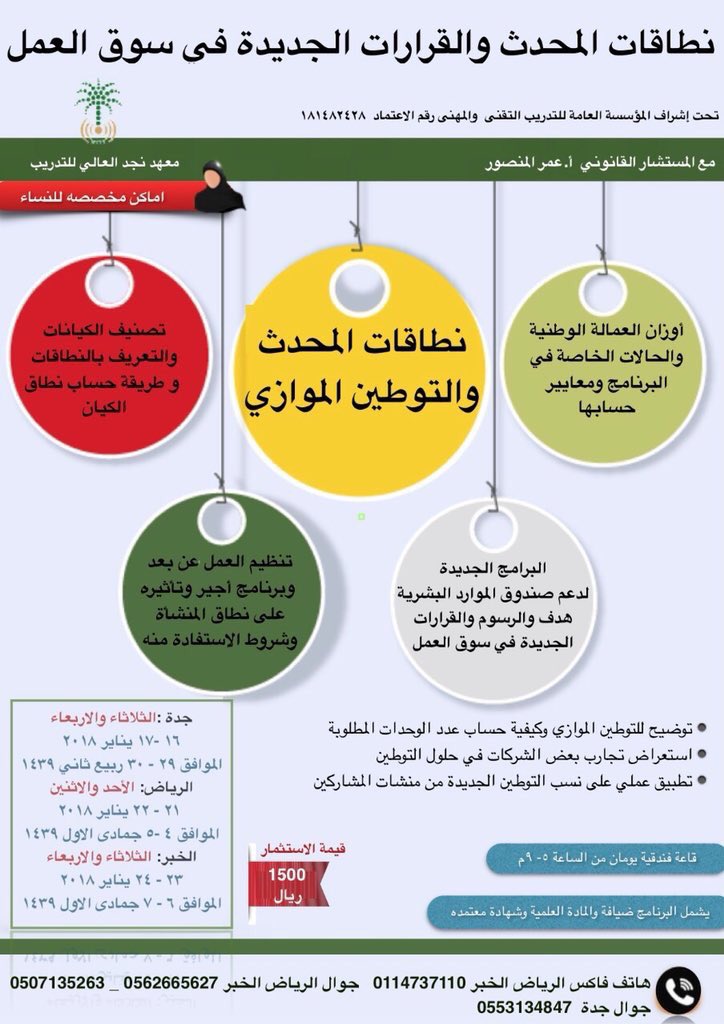 Twitter पर ملتقى التدريب دورة نطاقات المحدث والقرارات الجديدة في سوق العمل التوطين الموازي وكيفية حساب النسب المستهدفة برامج دعم صندوق الموارد البشرية هدف العمل عن بعد و نظام أجير وتأثيره على