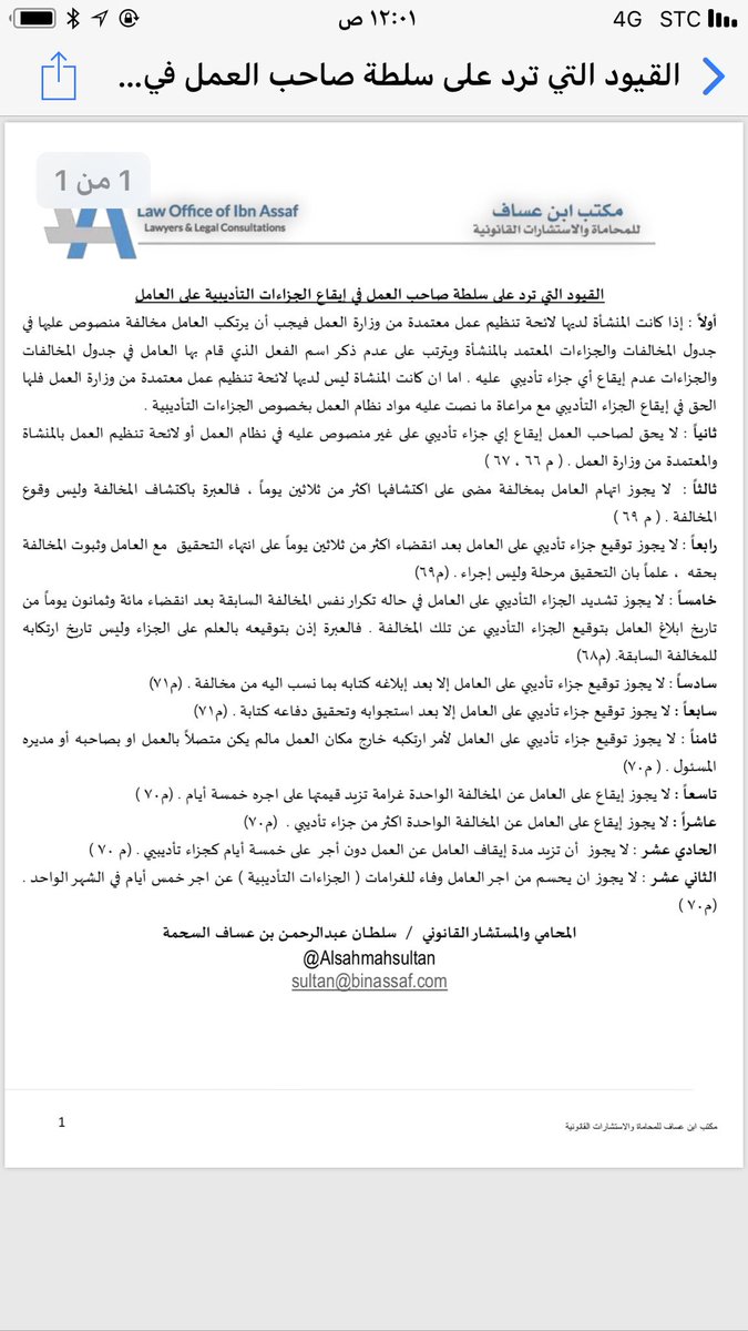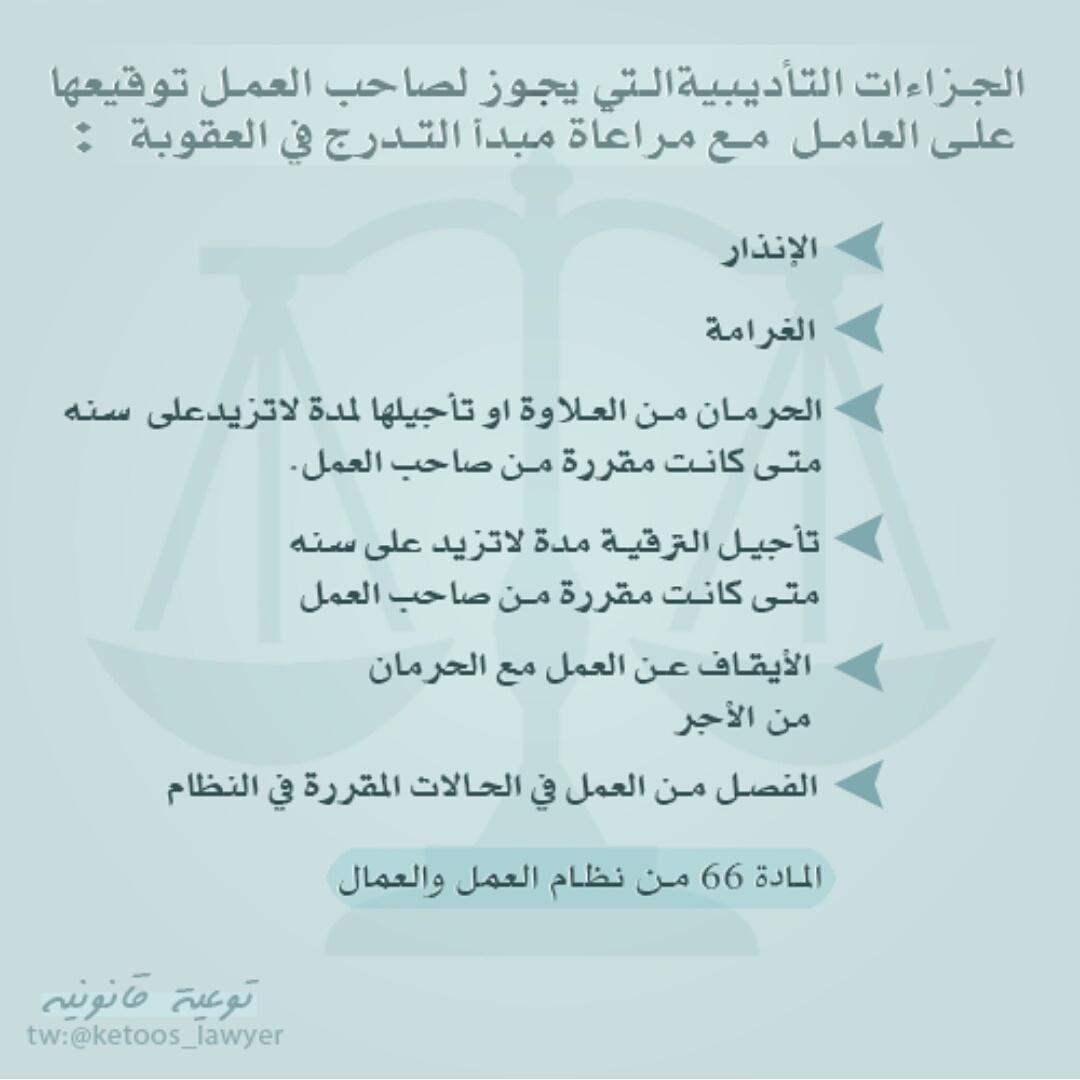 سلطان بن عساف السحمه On Twitter القيود التي تقيد سلطه صاحب العمل في ايقاع الجزاءات التاديبية على العامل المخالف تم توضيحها في الملف المرفق