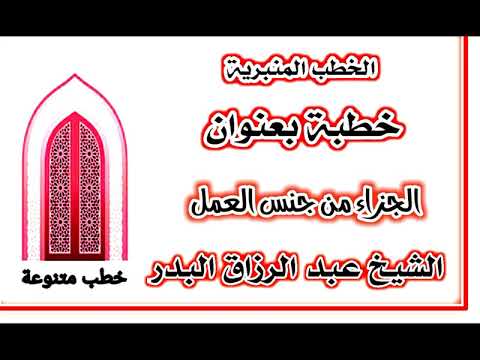 خطبة الجزاء من جنس العمل الشيخ عبد الرزاق البدر Youtube