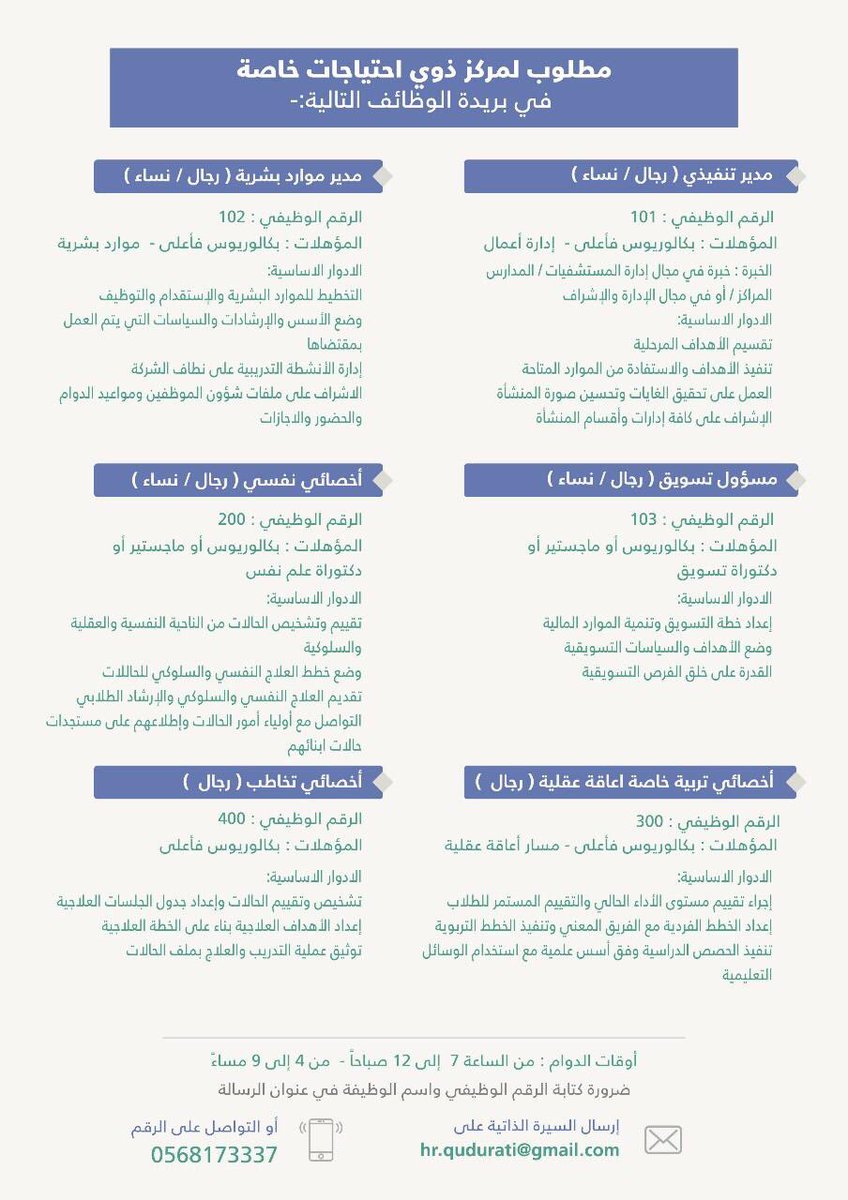 مهند وظائف القصيم Twitterren وظائف شاغرة للجنسين بمركز لذوي الإحتياجات الخاصه في بريدة ترسل السيرة الذاتيه للإيميل مع كتابة رقم الوظيفة و مسماه بعنوان الرساله Hr Qudurati Gmail Com Https T Co Me6q7z8i7p