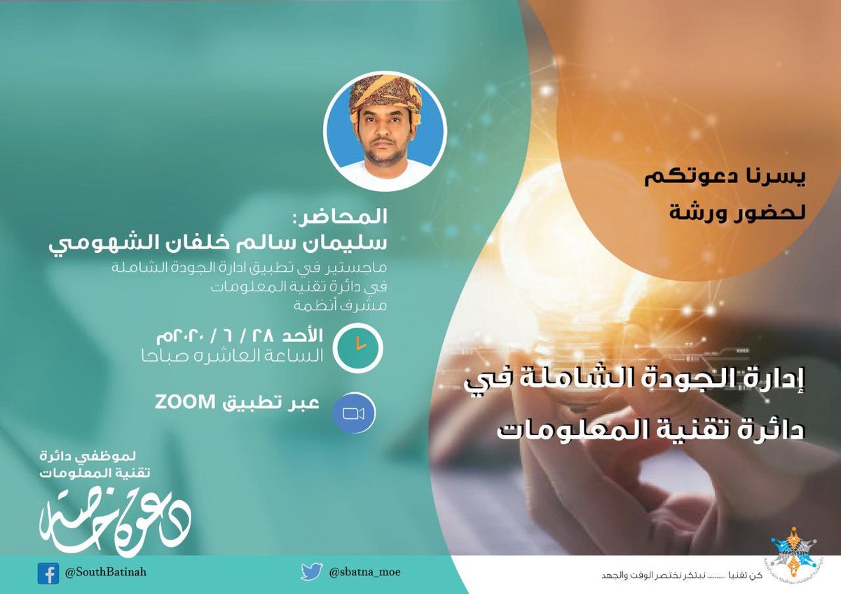 تعليمية جنوب الباطنة On Twitter نظمت دائرة تقنية المعلومات ورشة عمل بعنوان إدارة الجودة الشاملة في دائرة تقنية المعلومات قدمها الاستاذ سليمان الشهومي عبر تطبيق Zoom Https T Co Dr9lvjlpio