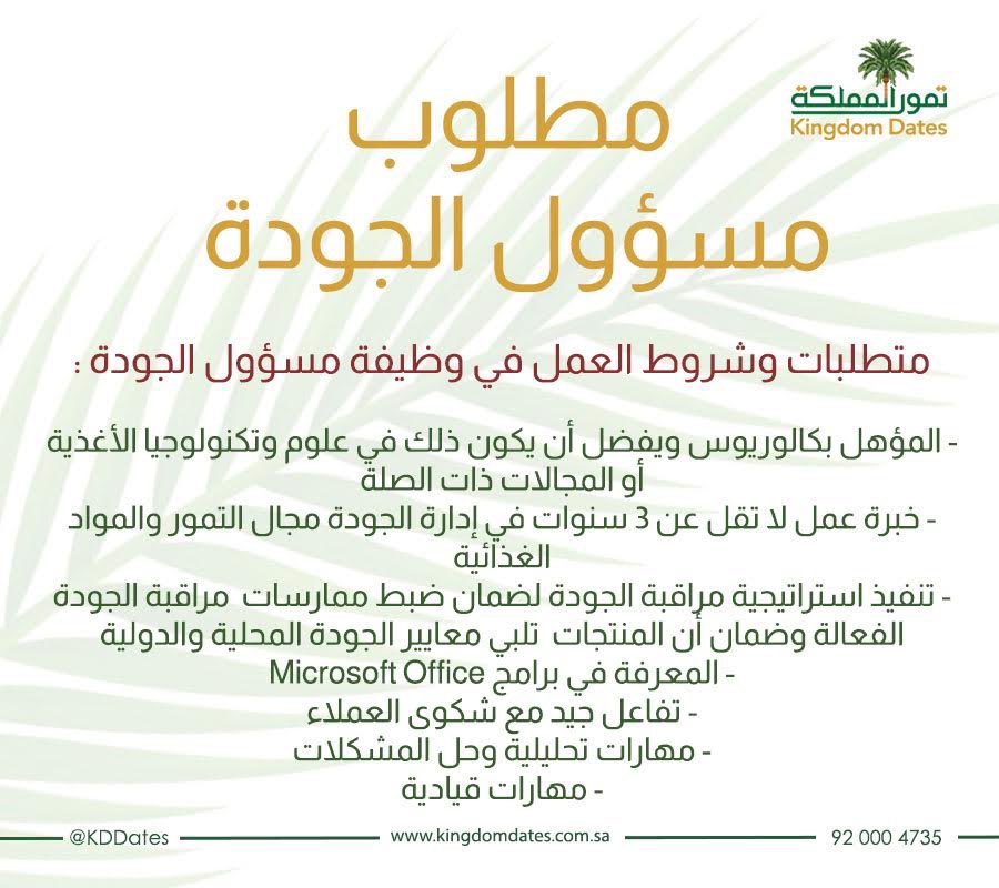 مهند وظائف القصيم On Twitter للجنسين وظيفة شاغرة بمصنع تمور المملكة في البدائع بمسمى مسؤول جودة التقديم عبر الرابط Https T Co 4dbzkji010