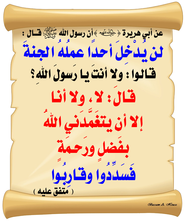 الحديث الصحيح في ان احدا لن يدخله عمله الجنة