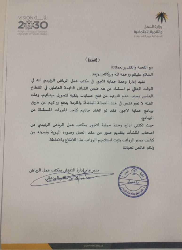وزارة العمل أبناء القبائل النازحة غير مسموح لهم بالعمل في هذه المهن واحتسابهم في نسبة التوطين بشرط صحيفة المرصد