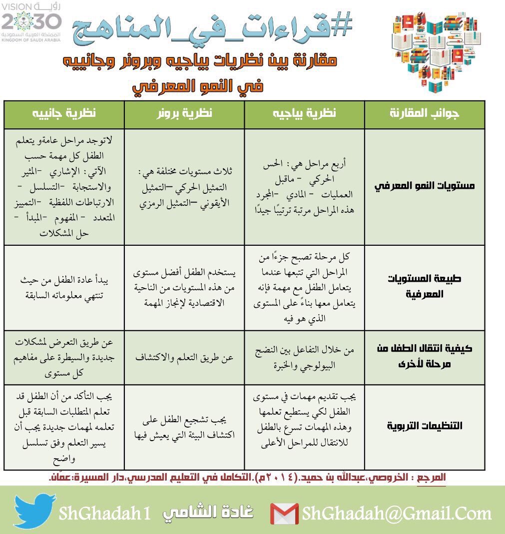 د غادة الشامي No Twitter مقارنة بين نظريات بياجيه وبرونر وجانييه في النمو المعرفي نظريات التعلم مناهج المناهج نظريات لطلبة البحث إلى كل باحث و باحثة Https T Co Nqcn7ruuen