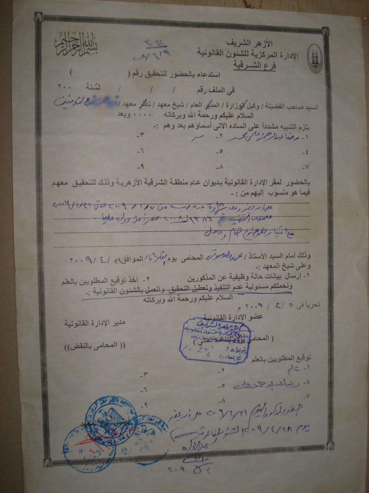الــعـــدل الـحـــريـة الـســـــلام تعنت وتعسف الشئون القانونية معي واستدعائي بصفة مستمرة للتحقيق أو مطالبتي بإحضار مستندات تفيد انقطاعي عن العمل في فترات كنت فيها محتجزا تحت أيدي جهاز أ
