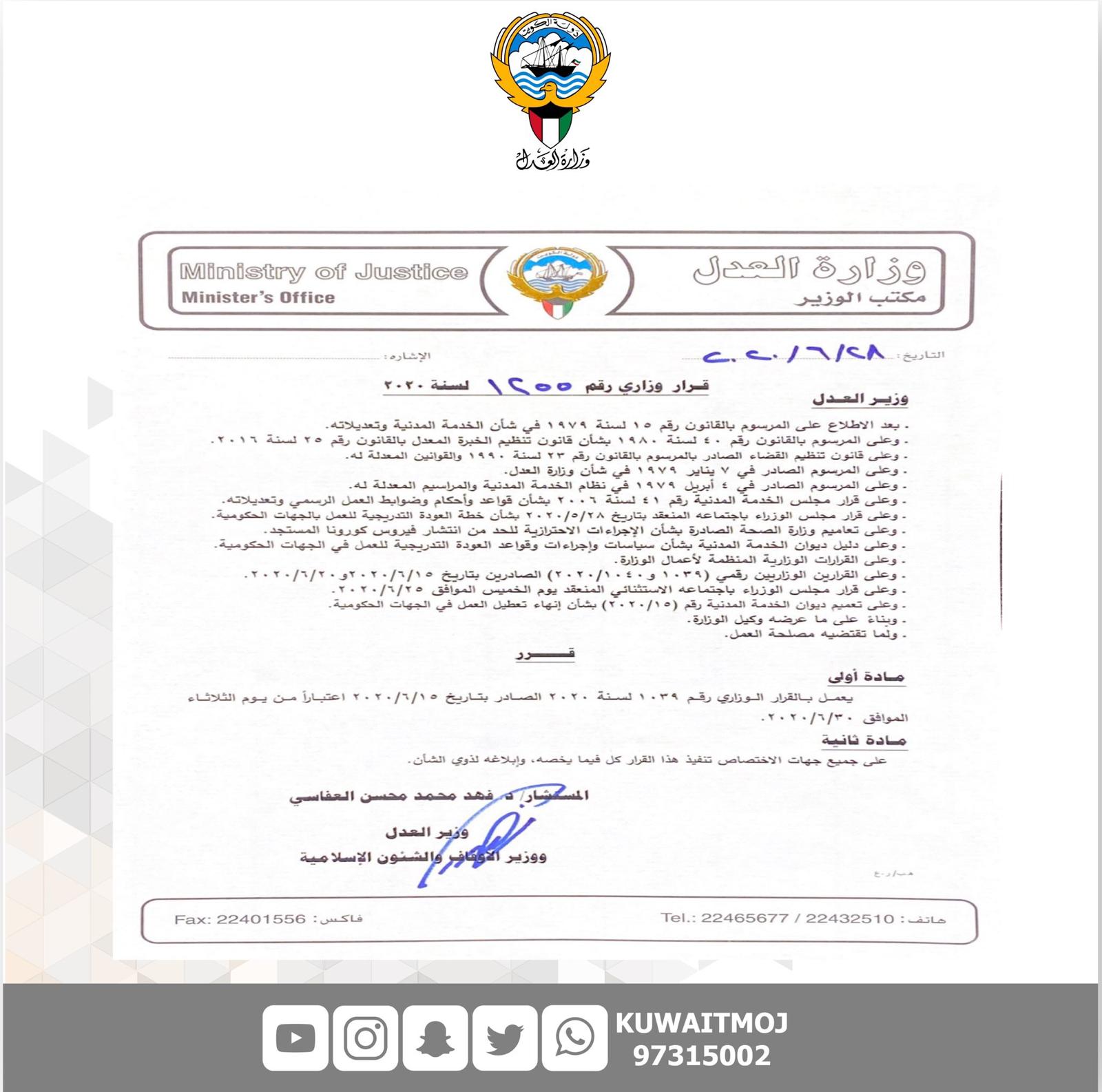 صحيفة الأنباء العفاسي الدوام في العدل من 8 30 صباحا حتى 1 بعد الظهر بدءا من الثلاثاء استمرار وقف العمل بنظام البصمة وإثبات الحضور والانصراف عن طريق التوقيع بالكشوف فهد العفاسي كورونا