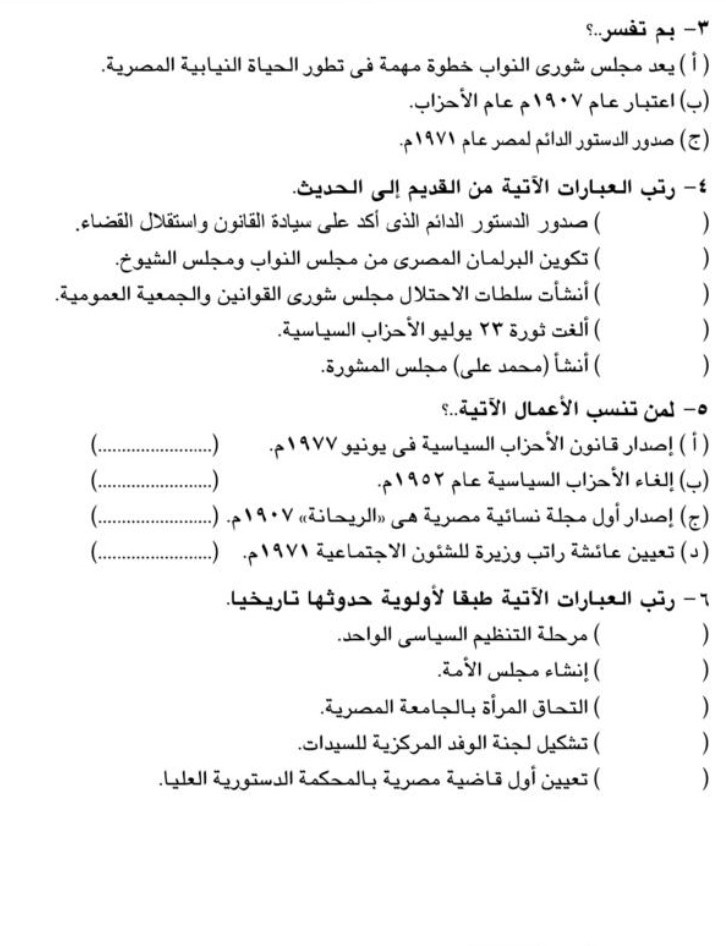 الحياة النيابية والحزبية ودور المرأة في العمل الوطني الدراسات الاجتماعية الفصل الثاني ثالث اعدادي المنهج المصري