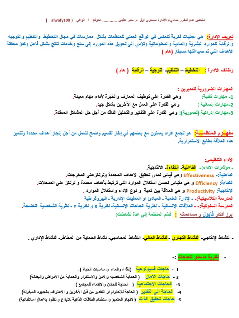 ملخص الوافي في مبادئ الادارة