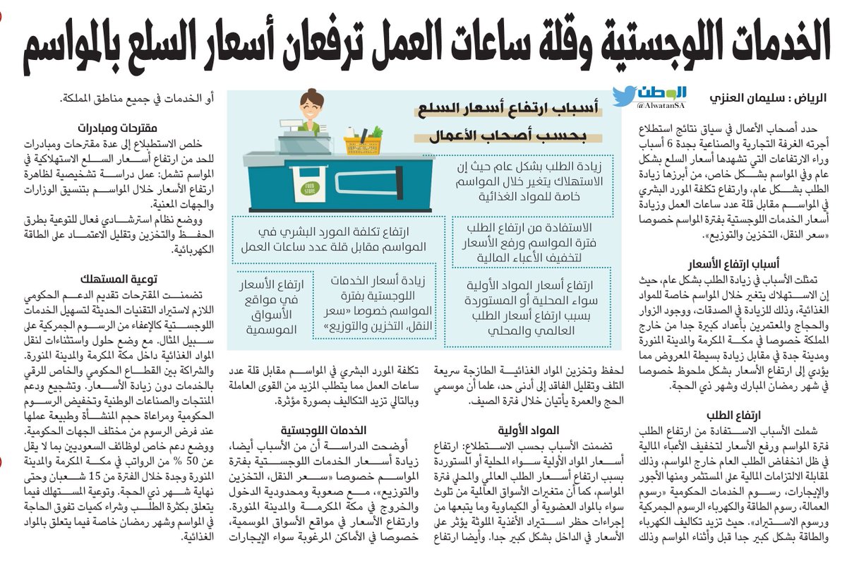 جريدة الوطن السعودية On Twitter الخدمات اللوجستية وقلة ساعات العمل ترفعان أسعار السلع اسعار السلع صحيفة الوطن Https T Co Ksqyfavexh