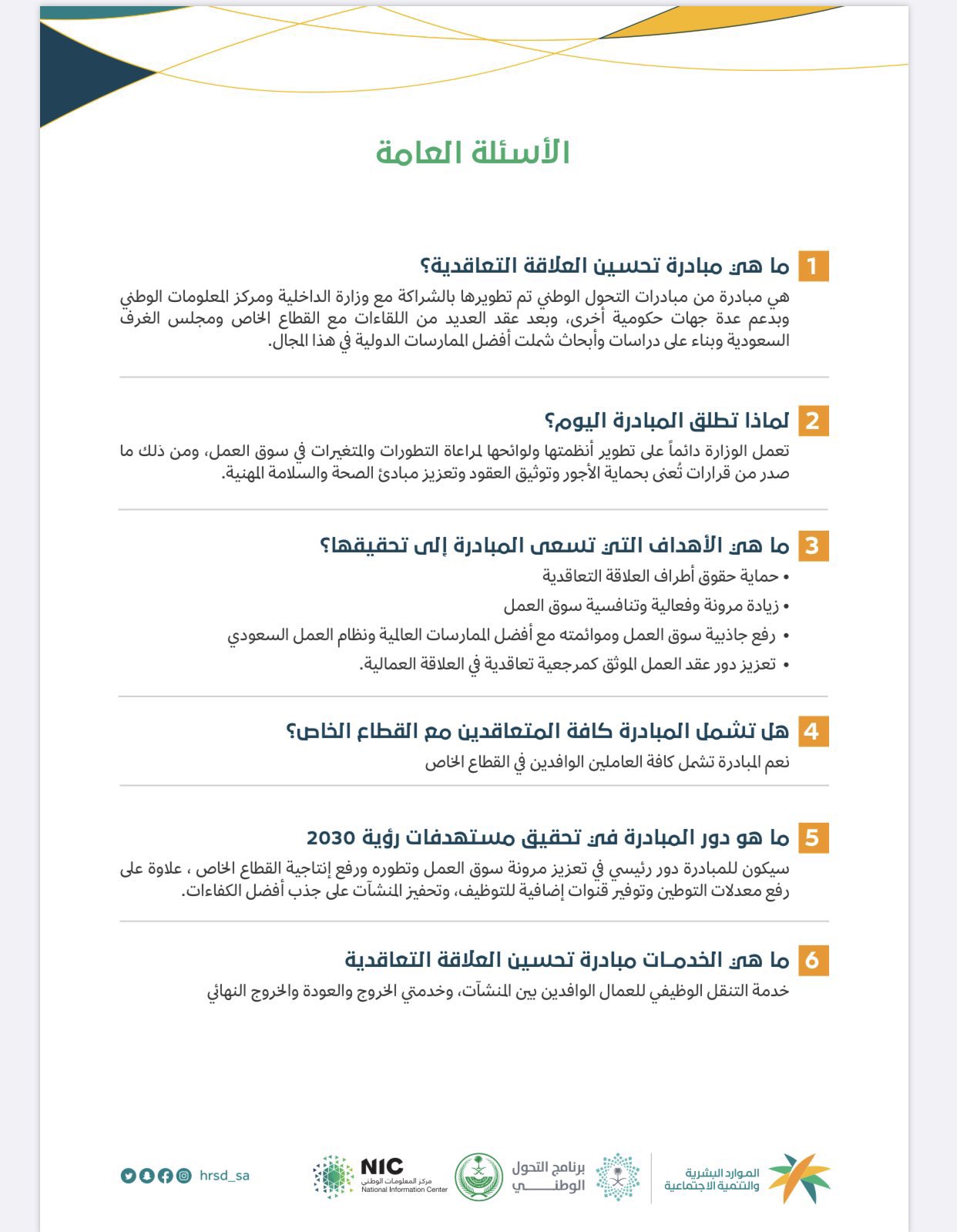 وزارة الموارد البشرية ترد على الأسئلة العامة حول مبادرة تحسين العلاقة التعاقدية