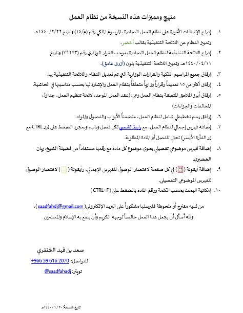 الخنفرينظام العمل ولائحته التنفيذية 1440