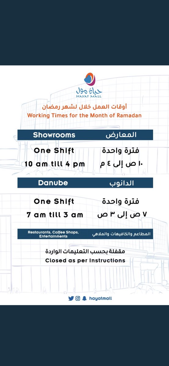لايف الرياض Sur Twitter اوقات عمل المولات خلال شهر رمضان الرياض بارك Riyadhpark Mall حياه مول Hayatmall من 10ص حتى 4 م العثيم مول Othaimmalls 9 ص حتى 5م النخيل