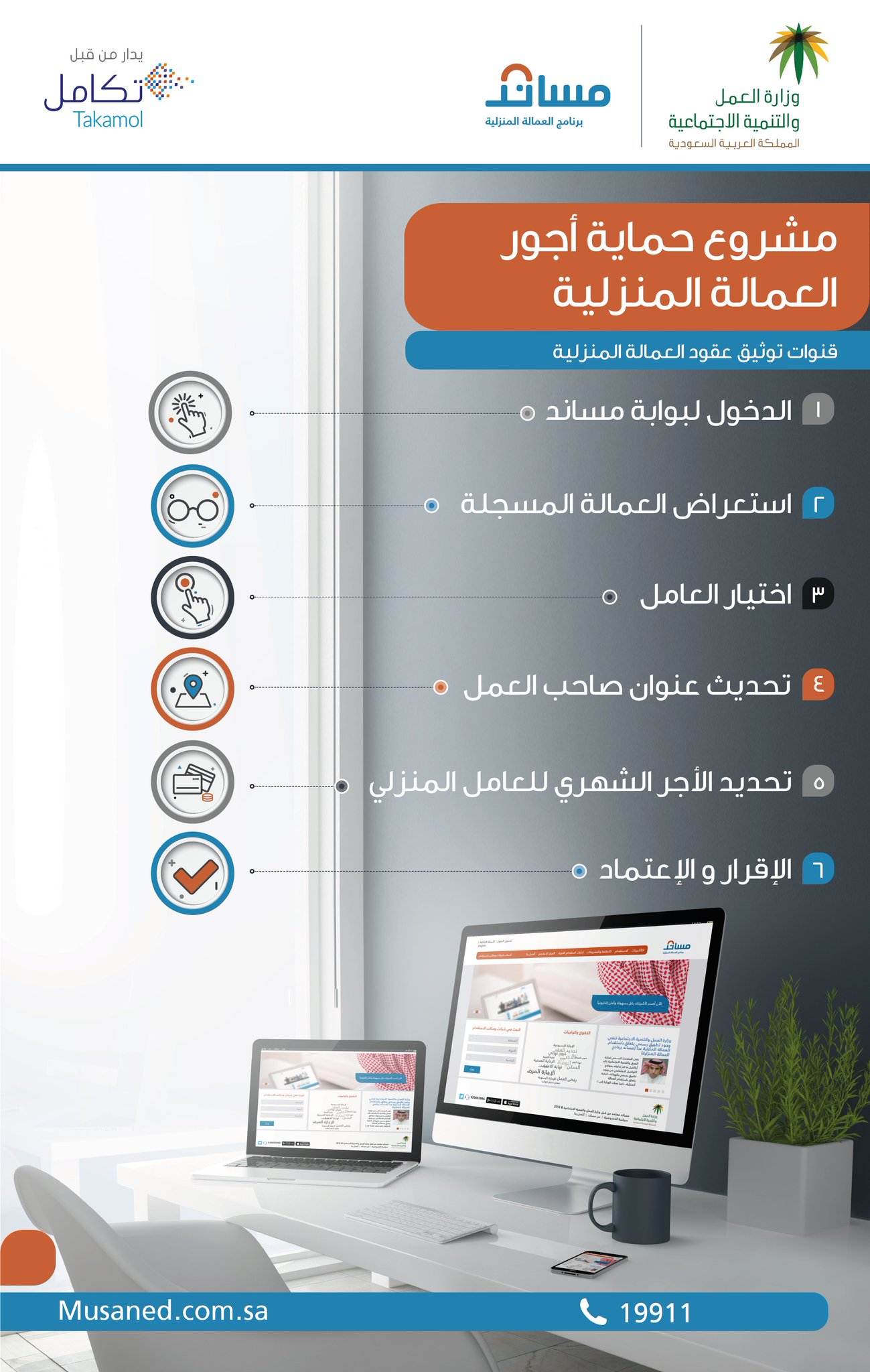 رابط برنامج مساند تسجيل الدخول طريقة استخراج تأشيرة العاملة المنزلية إلكترونيا موقع وزارة العمل