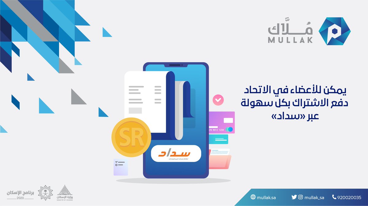 برنامج م ل اك On Twitter يمكنك دفع رسوم الاتحاد عبر خدمة رقم سداد من خلال حسابك البنكي ليتم ايدعها في حساب الاتحاد البنكي بشكل الكتروني ويأتي ذلك لتسهيل عملية جمع رسوم الملاك وشاغلي