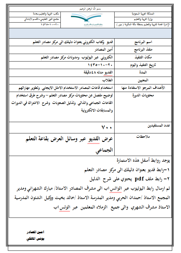 خطة وفعاليات مركز المصادر Abuaseem Alshamranicom