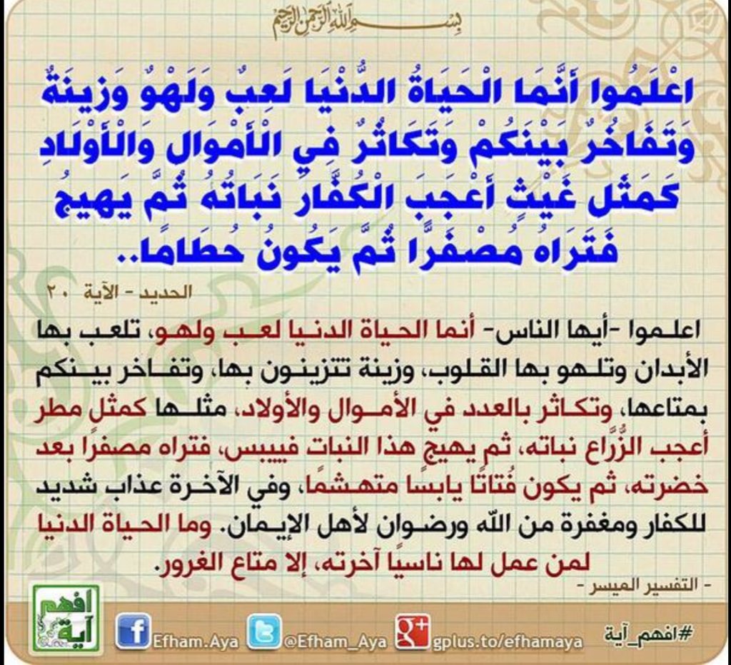 آيات عن الاغترار بالحياة الدنيا آيات قرآنية