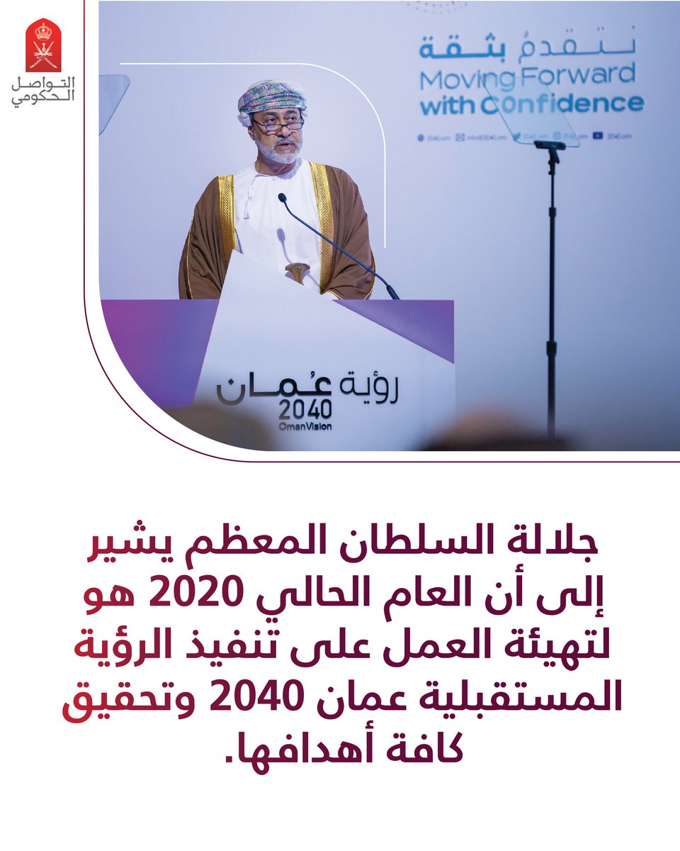 التواصل الحكومي A Twitter حضرة صاحب الجلالة أعزه الله يشير إلى كون العام الحالي ٢٠٢٠ سيكون من أجل تهيئة العمل على تنفيذ الرؤية المستقبلية عمان ٢٠٤٠ وتحقيق كافة أهدافها اجتماع مجلس الوزراء التواصل الحكومي