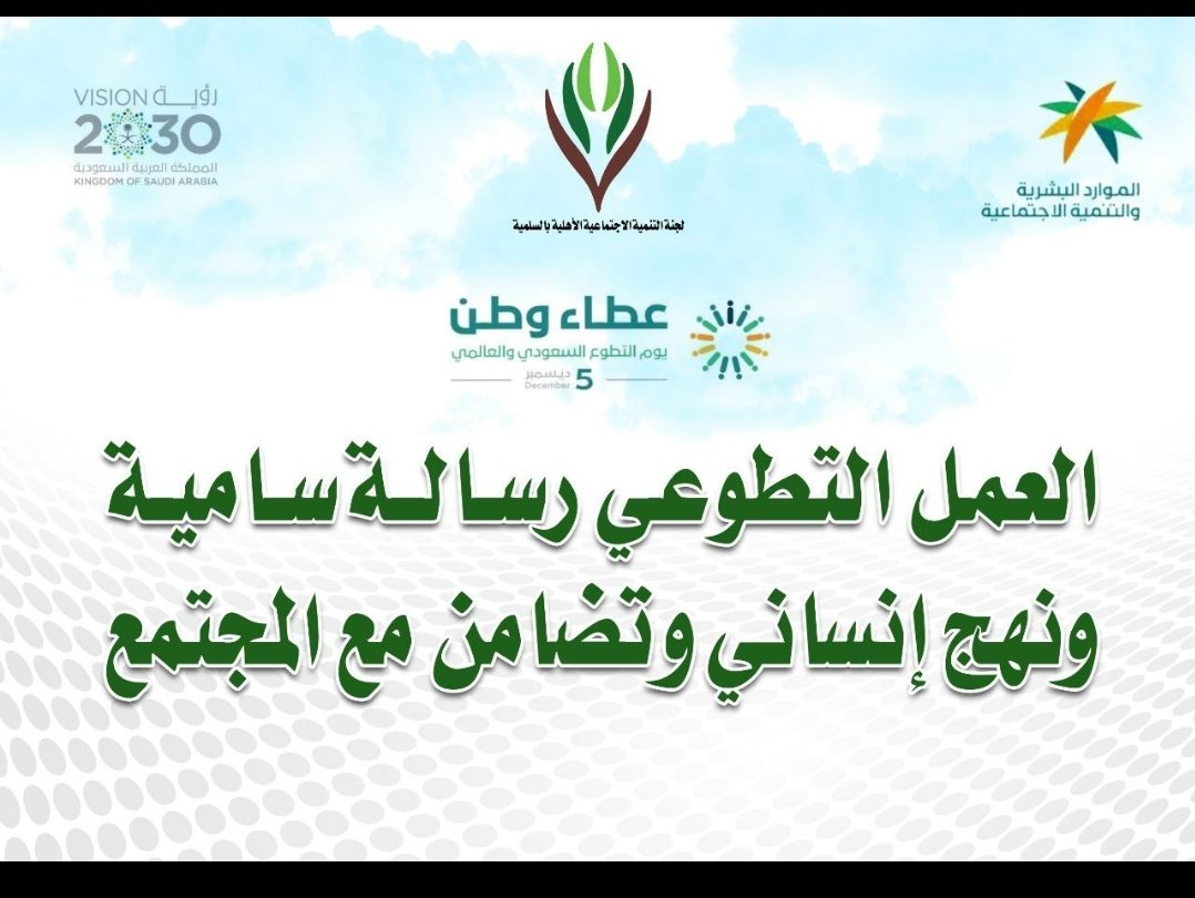 العمل التطوعي يسرنا دعوتكم لحضور جلسة بعنوان استقطاب المتطوعين من خلال منصة العمل التطوعي وذلك يوم الأحد ١٩ أبريل ٢٠٢٠م من ٨ ٣٠م إلى ١٠ ٣٠م المقاعد محدودة ستصلك رسالة Sms في