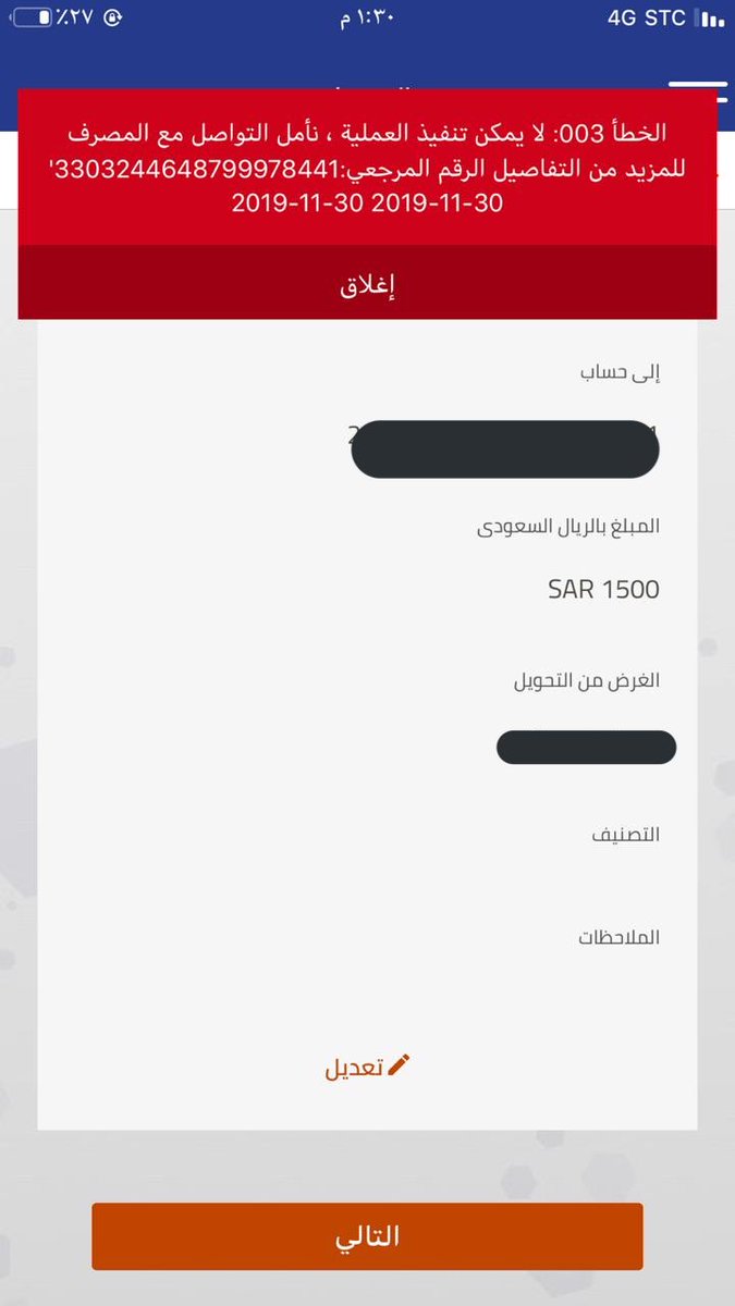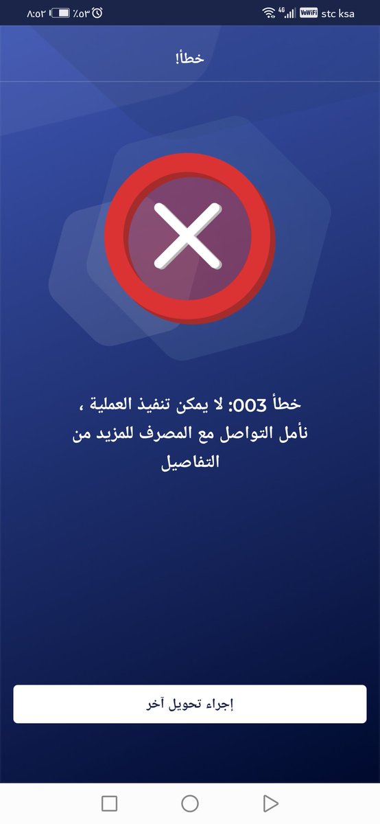 عذرا لا يمكن تنفيد العملية مؤقتا الراجحي معلومة