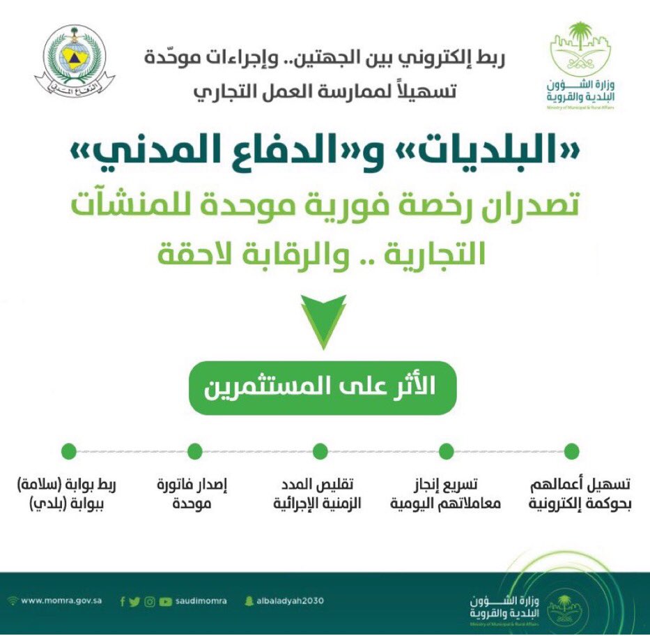 وزارة الشؤون البلدية والقروية والإسكان Twitter પર الرخصة البلدية أسهل البلديات و الدفاع المدني تصدران رخصة فورية بإجراءات موحدة للمنشآت التجارية تسهيلا لممارسة العمل التجاري والرقابة لاحقة وزارة الشؤون البلدية والقروية Https T Co