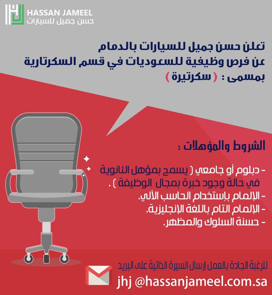 وظائف الشرقية Ksa On Twitter مطلوب سكرتيره في الدمام الشروط دبلوم او بكالوريوس لغة إنجليزية مهارات حساب الي للتقديم يلزم كتابة الوظيفة بالعنوان Jhj Hassanjameel Com Sa وظائف الشرقية وظائف نسائية Https T Co Vwoqyeo1k7