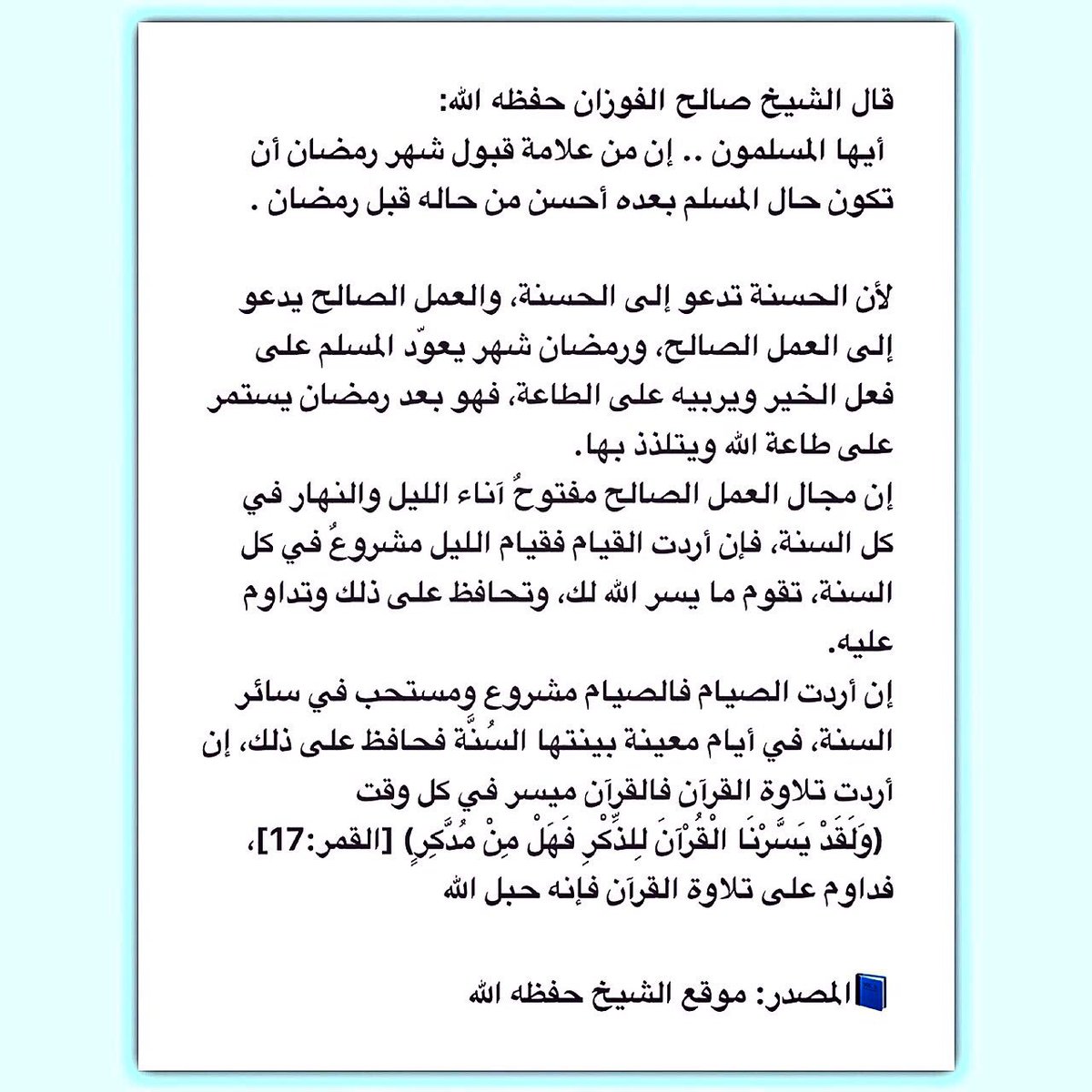 O Xrhsths العلامة صالح الفوزان Sto Twitter قال الشيخ صالح الفوزان أيها المسلمون إن من علامة قبول شهر رمضان أن تكون حال المسلم بعده أحسن من حاله قبل رمضان لأن الحسنة تدعو إلى