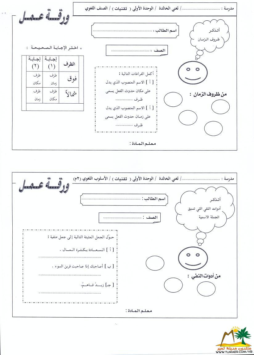 اوراق عمل مادة لغتي الصف الثالث الابتدائي الفصل الاول المنهاج السعودي 1440 2019 منتديات صقر الجنوب