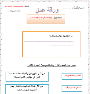اوراق عمل مادة مهارات البحث ومصادر المعلومات مقررات النصف الثاني
